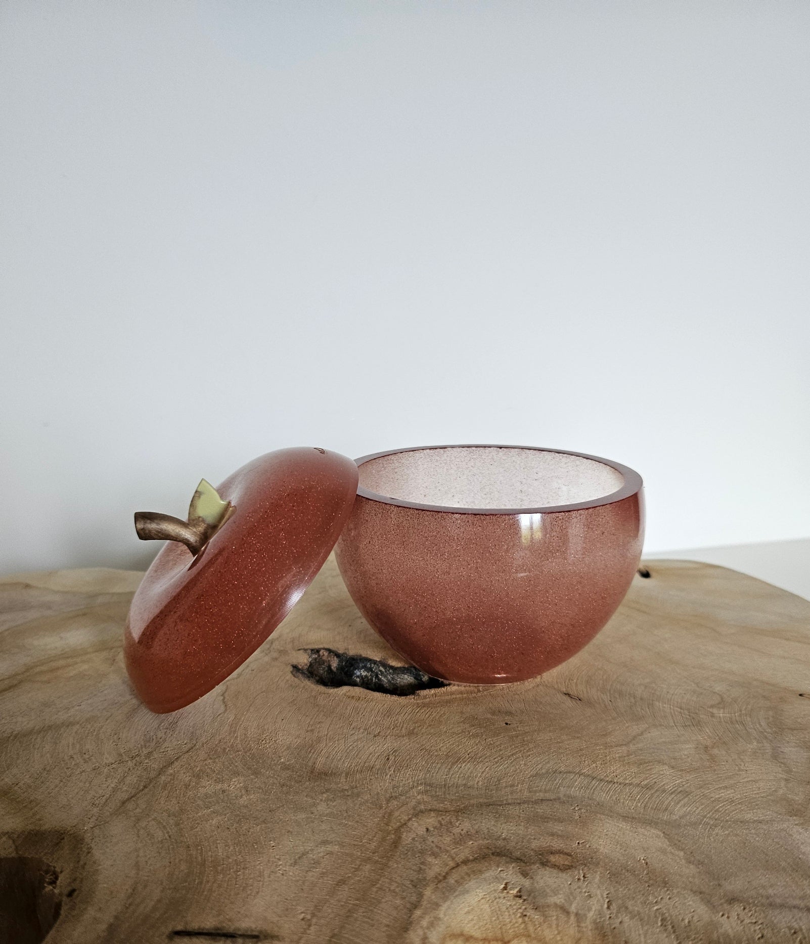 Succombez au charme de cette boîte en forme de pomme, une pièce aussi décorative que pratique, idéale pour apporter une touche de douceur et d’originalité à votre intérieur.
